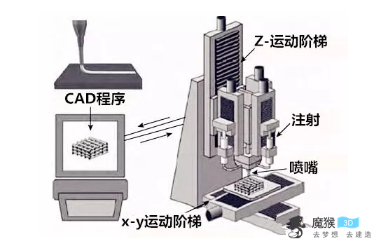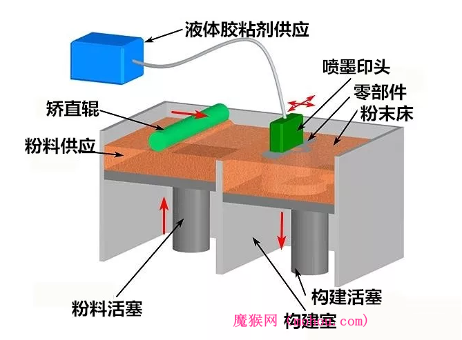 IJP具有成型原理簡(jiǎn)單,打印頭成本低,易產(chǎn)業(yè)化等優(yōu)勢(shì);但噴墨打印頭堵塞,另外打印高度受限且不能打印內(nèi)部多孔結(jié)構(gòu)模型,還要求粉末粒徑分布均勻,流動(dòng)性好且高溫化學(xué)性質(zhì)穩(wěn)定。 4三維印刷工藝(3DP) 三維打印是由MIT開(kāi)發(fā)出來(lái)的,首先將粉末鋪在工作臺(tái)上,通過(guò)噴頭把粘結(jié)劑噴到選定的區(qū)域,將粉末粘結(jié)在一起,形成一個(gè)層,而后,工作臺(tái)下降,填粉后重復(fù)上述過(guò)程直至做出整個(gè)部件。目前,以氧化鋯、鋯英砂、氧化鋁、碳化硅和氧化硅等陶瓷粉體為原材料。