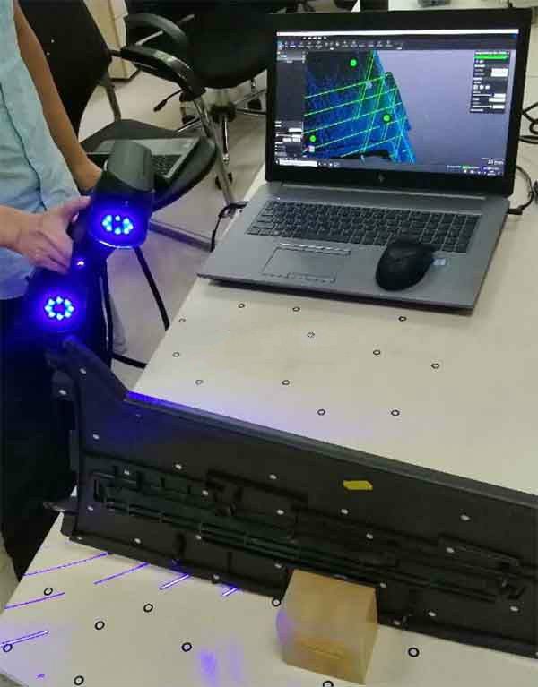 現(xiàn)在客戶想要提高測量效率,盡快出圖,且降低原有人工測量產(chǎn)生的誤差。手持式三維掃描系統(tǒng)能夠非常快速的中控面板進(jìn)行全面掃描,有效避免人為測量誤差。所以我司采用三維掃描儀對汽車中控面板,具體步驟如下: